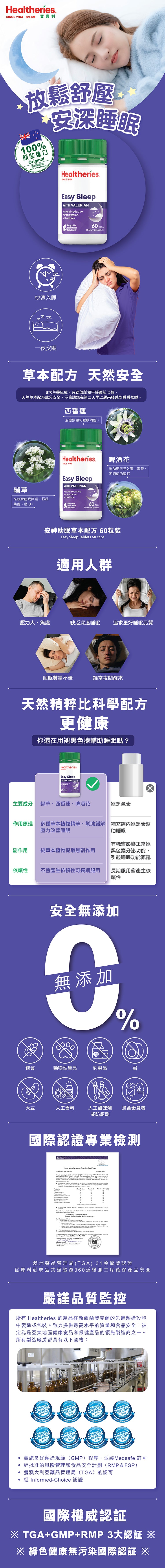 • Healtheries® Easy Sleep is a blend of four naturally calming herbs that can help you get to sleep more easily by calming your stress and tension. With Valerian, Passionflower, Skullcap and Hops, it’s the natural way to get a better night’s sleep.