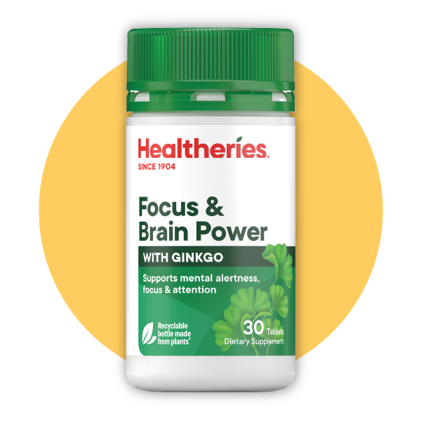 - Healtheries 專注力與大腦配方含有銀杏,支持頭腦清晰,幫助注意力和記憶力的提升。