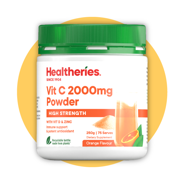 - Healtheries® 高強度維他命C粉2000毫克 配方,特別添加維他命 D 和鋅,美味、功效強效。結合三大營養素,支持免疫系統防禦和恢復,尤其是在您感到壓力時。
